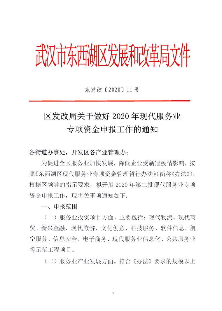 區(qū)發(fā)改局關(guān)于做好2020年現(xiàn)代服務(wù)業(yè)專項(xiàng)資金申報(bào)工作的通知