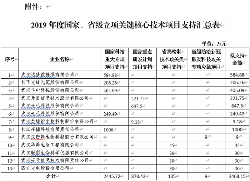 按照《關(guān)于申報(bào)東湖高新區(qū)2019年度國(guó)家、省級(jí)立項(xiàng)關(guān)鍵核心技術(shù)項(xiàng)目支持的通知》要求以及管委會(huì)相關(guān)規(guī)定,經(jīng)企業(yè)申報(bào)、審核、實(shí)地考察等流程,現(xiàn)將支持結(jié)果予以公示,公示期為2020年6月9日-6月15日。如有異議,請(qǐng)于6月15日下午17:00前將書面意見(jiàn)(蓋公司/單位公章)反饋至管委會(huì)科創(chuàng)局,逾期不予受理。