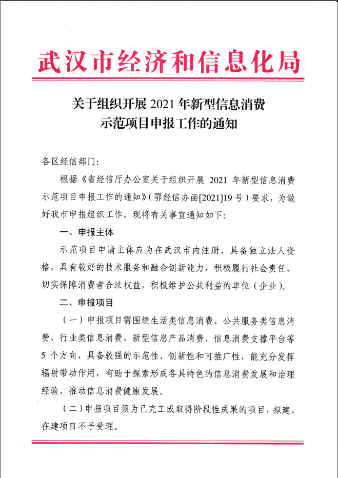 根據《市經信局關于組織開展2021年新型信息消費示范項目申報工作的通知》要求,為做好我區(qū)申報組織工作,現將有關事宜通知如下: