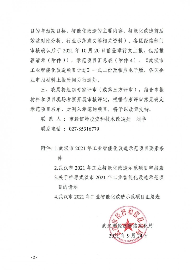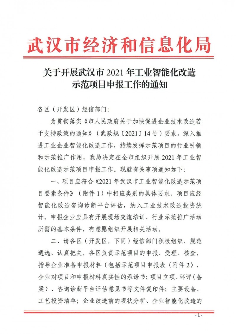 關于開展武漢市2021年工業(yè)智能化改造示范項目申報工作的通知