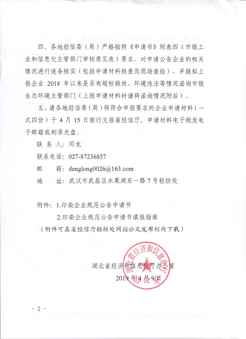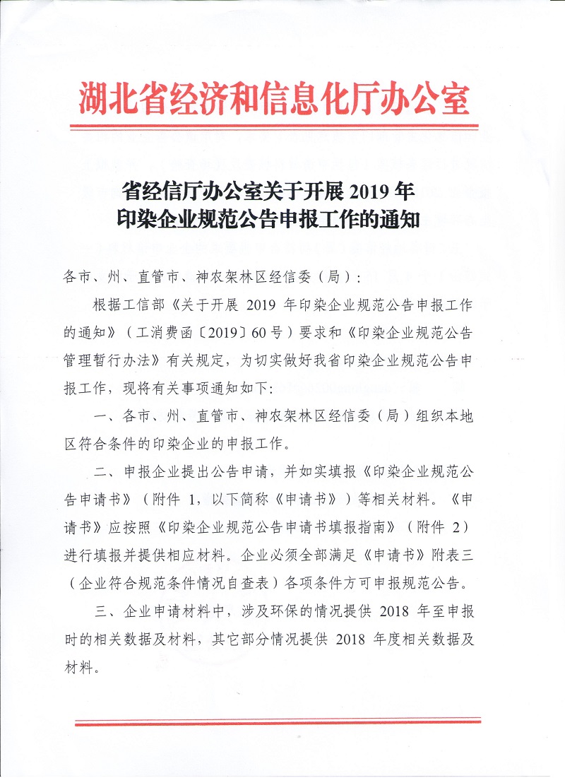 省經(jīng)信廳辦公室關(guān)于開展2019年印染企業(yè)規(guī)范公告申報工作的通知